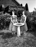 Here it is shown Ann Plankey and Gail Campbell standing by a fountain, looking ahead. Published in Fort Worth Star-Telegram morning edition May 16, 1954.