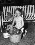 Connie McConnell, daughter of Mrs. P. D. McConnell, 2801 6th Avenue, gives her cocker spaniel a bath to get him ready for the Lone Star Cocker Specialty Club's sanction match. Published in Fort Worth Star-Telegram morning edition May 21, 1950.