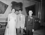 Setting out to tour Amon Carter Field at Glen Rose High School's annual junior-senior party there are Mrs. Neil Bridges, junior class sponsor; Douglas Marquis, center, junior vice president, and Eddie Flanary, senior president. Juniors were hosts at the Hawaiian dinner-dance for seniors. Published in Fort Worth Star-Telegram morning edition April 23, 1954.