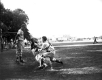 Carter Catcher, Pat Kouns tags out Poly's I. B. Childs at home in 6th inning of game at Carter. Childs tried to score from second on single. Right fielder, James McCrory threw him out. Carter won, 2-1. Published in Fort Worth Star-Telegram morning edition April 24, 1954.