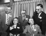 Five of the oldest members from point of service in the Quarter Century Club of Pure Oil Company's Texas producing division, standing, left to right, Ezra L. McIntyre, William M. Shepperd, and L. L. Haines. Seated are Mrs. Hazel Soper Mason and Claude Whitaker, both of Fort Worth. Shepperd is a 42-year veteran while the others have more than 35 years of service. Published in Fort Worth Star-Telegram morning edition April 23, 1954.