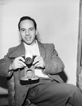 Wolfgang Klein, 28, of Germany, is touring portions of the United States under the auspices of the Christian Science Monitor Youth Forum, an organization devoted to better international understanding among young people. While in Fort Worth, Klein is visiting members of the forum and taking pictures of interesting spots with his German camera. Published in Fort Worth Star-Telegram morning edition April 23, 1954.