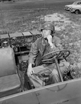 Captain Lindon H. Wilson of Denton, commander of Company A, 155th Tank Battalion, Combat Command A of the 49th, is in radio communication with his four platoon leaders more than 20 miles away. The Texas National Guard outfits will begin two weeks of training at North Fort Hood June 27. Published in the Fort Worth Star-Telegram morning edition June 20, 1954.