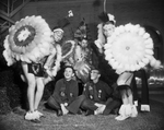 Three "Indians" who are members of the Boy Scout Order of the Arrow dance around two other scouts eligible to be "tapped" for membership at Forest Park. Seated, left to right, are Tom Bullock and Joe Spurlock. Dancing, left to right, are John West, Pat Riley, and Jack Lyon. Published in Fort Worth Star-Telegram morning edition April 26, 1954.