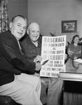 Spencer Harris, left, and M. W. (Hap) Hovenkamp, planning for the Lions' benefit game at La Grave Field. Published in Fort Worth Star-Telegram morning edition April 26, 1954.