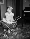 Dorothy Clip Coleman, 3, putting her doll in a miniature stroller. Dorothy is the daughter of Mr. and Mrs. F. S. Coleman. Published in Fort Worth Star-Telegram evening edition April 26, 1954