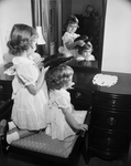 Brenda Chambers, 4, puts one of her mother's hats on her 2-year-old sister, Paula. The children are daughters of Mr. and Mrs. Paul Chambers. Published in Fort Worth Star-Telegram evening edition April 27, 1954.