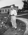 Picture of Roy A. Klebold shown working in garden. Published in Fort Worth Star-Telegram evening edition Jun 22, 1954.