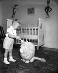 Michael Anderson, 20 months old, brushes his stuffed lion, Beowulf. Michael is the son of Mr. and Mrs. W. T. Anderson. Published in Fort Worth Star-Telegram evening edition April 27, 1954