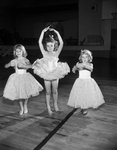 The ballet number of the South Side Recreation Building's spring recital will feature score of little girls. Christine Hawley, 6, Karen Stilwell, 6, and Judy Shockey, 5, left to right, will dance with the others during the performance which opens soon at Will Rogers Memorial Auditorium. Published in Fort Worth Star-Telegram morning edition April 27, 1954.