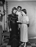 Three of the principals in the senior class play at Technical High School look over lines in the comedy, "Curtain Going Up." The students are, left to right, Shirley Gee, Fred Ball, and Carol Williamson. Published in Fort Worth Star-Telegram morning edition April 28, 1954.