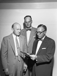 Included among the Fort Worth doctors who will have leading parts during the Texas Medical Association's 78th annual meeting Sunday through Wednesday at San Antonio are, left to right, Dr. Herman C. Sehested, who will discuss gallbladder study, Dr. O. J. Wollenman, who will read a paper, "Modern Techniques in Cross-matching Blood," and Dr. O. M. Phillips, who will speak on problems of the aged. Published in Fort Worth Star-Telegram morning edition April 29, 1954.