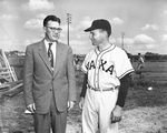 W. E. Kirk, left, minister of the College Street Church of Christ at Waxahachie, and Hal Curry, Waxahachie High School baseball coach, took main roles in establishing a church mission at Newport, Rhode Island. Published in Fort Worth Star-Telegram morning edition April 29, 1954.