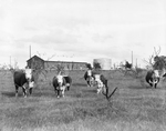The photograph shows cattle on the Jack County ranch of E. C. Richards and Son, grazing near Sinclair Pipe Line Company's Hensley Station. Published in Fort Worth Star-Telegram April 29, 1954.