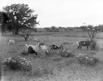 The photograph shows goats grazing on brush in Jack County, part of a pasture clearance program. Published in Fort Worth Star-Telegram April 29, 1954.