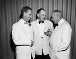 Dr. A. L. Garrison of Port Arthur, left, new president of the Texas Association of Osteopathic Physicians and Surgeons, admires the Queen Elizabeth II Coronation Award won by Dr. Allan A. Eggleston of Montreal. Standing near is Dr. Phil R. Russell of Fort Worth, executive secretary of the association. Dr. Garrison is the national president of the osteopathic organization. Published in Fort Worth Star-Telegram morning edition April 30, 1954.