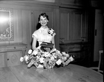Here it is shown Nelda Henslees by a table with flowers and a graduation cap. Published in Fort Worth Star-Telegram morning edition May 16, 1954.