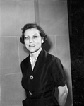 The photograph shows Mildred Earl. Mildred is standing wearing a black dress. Published in Fort Worth Star-Telegram morning edition May 4, 1954.
