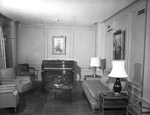 Reception Room - This is a view of the reception room, viewed from the fireplace end, at the new St. Joseph's School of Nursing students' residence which will be opened formally to the student nurses Thursday afternoon. a door at left opens onto a patio at the building's rear. Published in Fort Worth Star-Telegram evening edition May 6, 1954.
