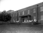 Enjoying the southeast breeze which sweeps over the patio at the rear of the new 106-bed St. Joseph's School of Nursing's Students Residence are a group of the young women for whom the light pink brick and tile structure was built. The building will be dedicated at 4:30 p. m. Published in Fort Worth Star-Telegram morning edition May 6, 1954.