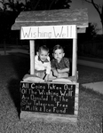Seconds after Jerry Martin, 4, son of Mr. and Mrs. R. H. Martin, left, of 2617 May, wished for rain, a few drops began to fall around this small wishing well at 3121 South Riverside Drive. Joining him in making wishes is 3-year-old Preston Bell, son of Mr. and Mrs. Fred E. Bell, of 1004 E. Roberts. Proceeds from the wishing well go to the Star-Telegram Milk and Ice Fund. Published in Fort Worth Star-Telegram morning edition May 9, 1954.