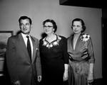 Ray Hayes of Fort Worth, left, first vice president of the Southwest Employment Board, discusses plans for the coming year with Mrs. Mayme Autry of Fort Worth, center, a director, and Mrs. Grace Winn of Houston, president. Published in Fort Worth Star-Telegram morning edition May 9, 1954.