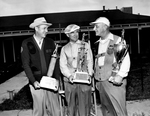 John Loffland Jr., Brooks Berlin and Chester Schneider, left to right, of the Fort Worth Gun Club and their doubles, handicap and singles trophies, respectively, won. They were in the Texas Trap shooters Association state meeting. Published in Fort Worth Star-Telegram morning edition May 11, 1954.