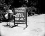 Dennis Gene Walters of 340 Youngblood, left, and a cousin Andy Walters of Weatherford, do their bit to help Forest Park Zoo buy a pair of gorillas. Published in Fort Worth Star-Telegram morning edition May 16, 1954.