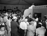 Visitors to the Star-Telegram Home Show crowded around and stretched to see the fist Texas color television broadcast. Hundreds viewed the show, voiced their reactions to color TV then wandered around to see other improvements in equipment for the home. Published in Fort Worth Star-Telegram morning edition May 6, 1954.