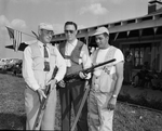 Preliminary 16-yard open class winners in the Texas Trap shooters Association state meet , left to right, Walter Fraser, Groom, Class B; H. A. Herbert, Passaic, N. J., Class C, and Charles Rivers, Lunnock, Class D. Published in Fort Worth Star-Telegram morning edition May 14, 1954