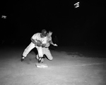 Despite appearances, this is not a force out. Paschal's Ed Sankary has already tagged out Sonny Samford of Adamson at third in the opening game of the Paschal-Adamson baseball series. Second game of series is set for Dallas, when Panthers will attempt to even things after losing opener, 5-2. Published in Fort Worth Star-Telegram morning edition May 20, 1954.