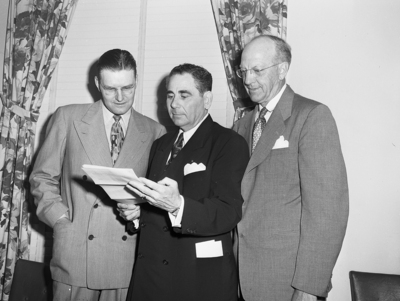 Officers of the newly formed Fort Worth Farm and Ranch Club, are, left to right, W. A. King, secretary-treasurer; Wiley Akins, president; and W. L. Pier, vice president. Published in Fort Worth Star-Telegram morning edition May 23, 1950.