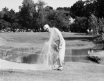 Byron Nelson hitting a shot from a sand trap on the 16th green. Published in Fort Worth Star-Telegram morning edition May 29, 1954.