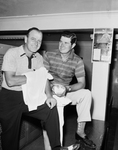 Jack Mann of Temple, left, and Bill Trombley of Dallas cool off after Professional Golfers' Association (PGA) qualifying rounds at Glen Garden. Published in Fort Worth Star-Telegram morning edition June 2, 1954.