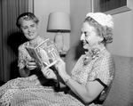 Mrs. Katie Louchheim, right, director of women's activities, Democratic National Committee, confers with Mrs. Gobern Keatts, president of the Tarrant County Democratic Woman's Club. Mrs. Louchheim was principal speaker at a luncheon at Worth Hotel. Published in Fort Worth Star-Telegram morning edition Jun 6, 1954.
