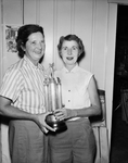 The photograph shows Mrs. C. B. Mitchella, right, the new Z. Boaz Women's Golf Association champion, and the runner-up, Mrs. J. H. Smith. Published in Fort Worth Star-Telegram morning edition June 6, 1954.