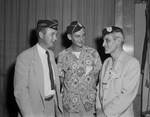 Delegates to the seventh annual national convention of American Ex-Prisoners of War, Inc., Saturday elected James S. Browning of Tuscaloosa, Ala., center, commander for the upcoming year. Roger Bamford, left, of Oklahoma City, was chosen vice commander. George Bernard, right, of 3024 Halbert, commander of the Longhorn chapter here, was elected treasurer. Published in Fort Worth Star-Telegram morning edition Jun 6, 1954.