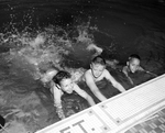 Three boys enrolled in the Young Men's Christian Association swimming course for youngsters learn how to kick and hold at their first lesson. They are left to right, Billy Taylor, 3132 S. Jennings; Freddie Brasch, 7154 Glen Hills Rd., and Dan Thomas, 3120 Carson. Published in Fort Worth Star-Telegram morning edition June 8, 1954.