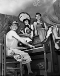 Piano in barroom scene (all of float not shown) with Pat Lidia, left, and Betty Dodson on piano, and Joe Dodson, father of Betty, impersonating female piano player. Published in Fort Worth Star-Telegram morning edition June 24, 1950.