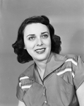 Miss Dolores Cohn, daughter of Mrs. Louis Cohn, 1640 Westmoreland Pl., recently was installed as president of the Council of Jewish Juniors. In the image she is seated, looking up and away from the camera with a large smile on her face and wearing a nice blouse. Published in Fort Worth Star-Telegram morning edition May 27, 1950.