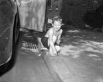 Image of Tommy Johnston, 5, son of Mr. and Mrs. Thomas B. Johnston, 1004 W. Pafford, showing off his sore big toe that he received when a car had sideswiped the family car his mother had been driving. Everyone involved was okay. Published in Fort Worth Star-Telegram evening edition May 23, 1950.