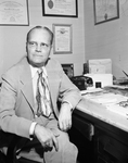 Image of Doctor J. Shirley Sweeny, Gainesville Diabetic Camp director. Image shows that he is seated at his desk in his office. (no clipping)