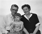Mr. and Mrs. Jack Fralia sitting with their granddaughter, Kathleen Ann Valentine. The Fralia have managed station XEPN in Piedras Negras.
