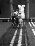Mrs. Hart and children Gary and Janis with their backs to the camera. Published in Fort Worth Star-Telegram.