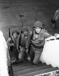 Three enlisted men climb aboard the plane. Left to right they are Sergeant Dan N. McBrayer of 3043 Ramona, Corporal James R. Meinen of 2118 Market and Private Gordon McConnell of 4001 Carnation. Published in Fort Worth Star-Telegram morning edition July 12, 1954