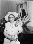 Mrs. Alice Roberta Bittick (wife of Samuel G. Bittick II), of 609 College, was praised for her church, club and civic work at an appreciation luncheon at the Women's Club by the Penelope Club of which she has been a member 45 years. A woman wearing a hat and suit, standing and smiling. She has a corsage. Published in Fort Worth Star-Telegram evening edition, May 25, 1950.