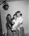 Mac Taylor, 9, David Kirkpatrick, 4, and Earline Jackson, 13, shown, left to right, were three of a group of children who recently earned $7.61 for the needy children on the rolls of the Star-Telegram Milk and Ice Fund. The group staged a circus and picture show benefit. Published in Fort Worth Star-Telegram morning edition July 18, 1954