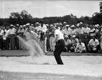 Byron Nelson blasts the ball from a trap at the second green in first round at Colonial. He then sank his putt for a par 4. Published in Fort Worth Star-Telegram, morning edition May 26, 1950.