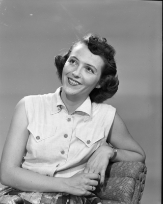 Miss Peggie Spencer, daughter of Mrs. Leita R. Spencer, 724 Colvin, left, for Louisville, Kentucky, where she will be a staff photographer for the Louisville Courier-Journal. She has been a photographer for the Star-Telegram. Published in Fort Worth Star-Telegram evening edition, May 29, 1950.