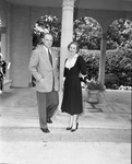 Mrs. Margaret Weaver Porter and William Frederick Bramstedt to be married. A man wearing a suit and a woman wearing dress. Standing up and smiling. Published in Fort Worth Star-Telegram morning edition, May 26, 1950.